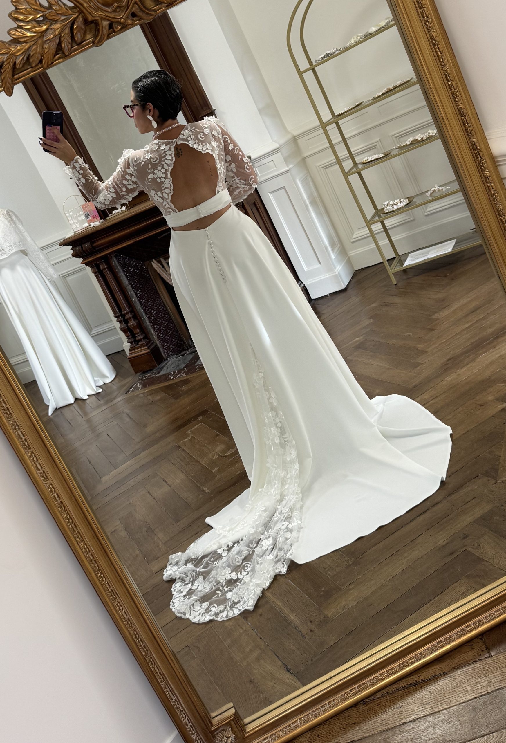 Le showroom est entièrement privatisé, afin que vous puissiez vivre un moment inoubliable avec vos proches. Ainsi, Sara prendra tout le temps nécessaire pour échanger avec vous et comprendre vos envies pour le grand jour. De plus, vous découvrirez des espaces spécialement conçus pour chaque étape : les essayages, les robes, et enfin, votre moment de découverte.